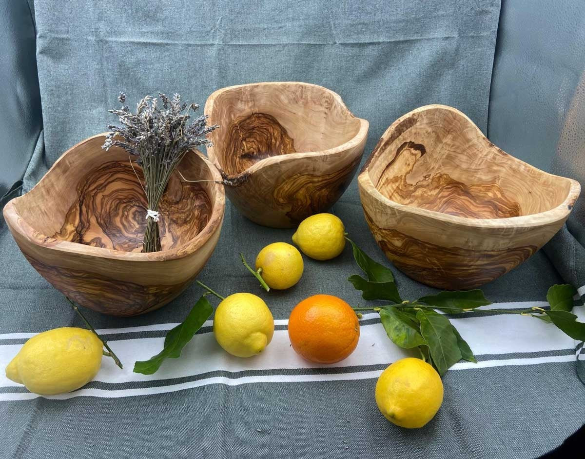 Ce magnifique saladier en bois d'olivier offre une couleur et un modèle uniques pour chaque pièce.