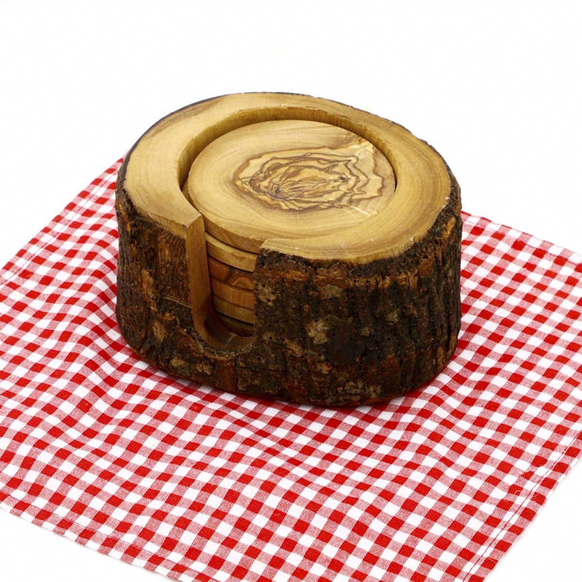A la fois objet déco et objet très pratique, le kit sous-tasse et support en bois d’olivier se présente comme un mini-tronc renfermant des petits sets de tasses.