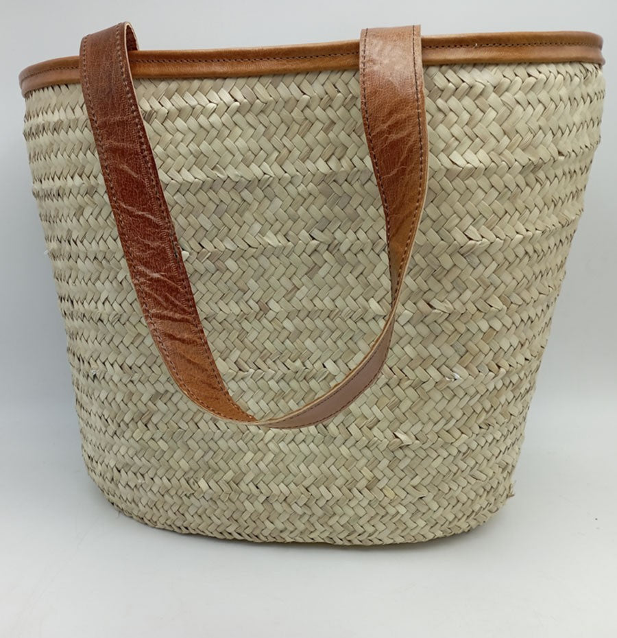 Ce grand Panier bord et anses en cuir de grande taille, Couffin en palmier naturel est idéal pour faire vos courses au marché, pour aller en balade, pour un pique-nique, à la piscine ou à la plage.
