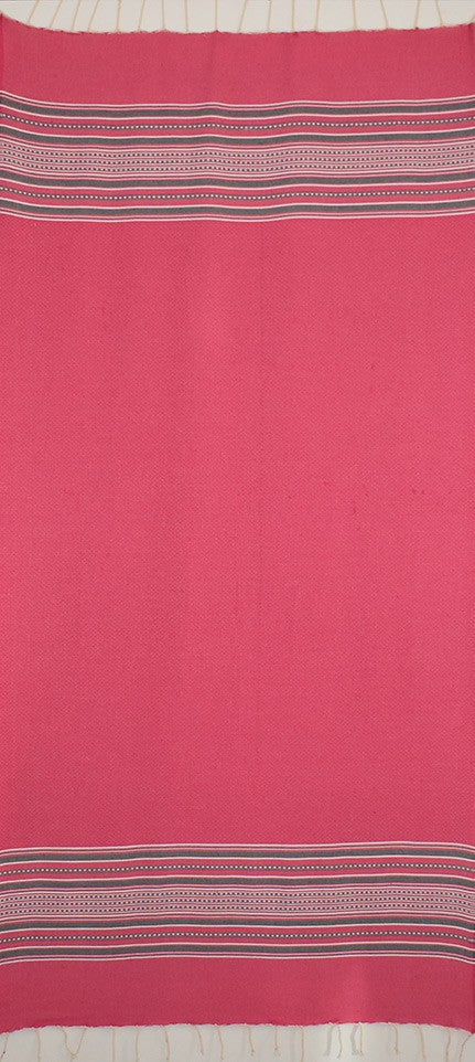 Fouta arabesque rose foncé avec rayures gris Fouta Tunisia - 1
