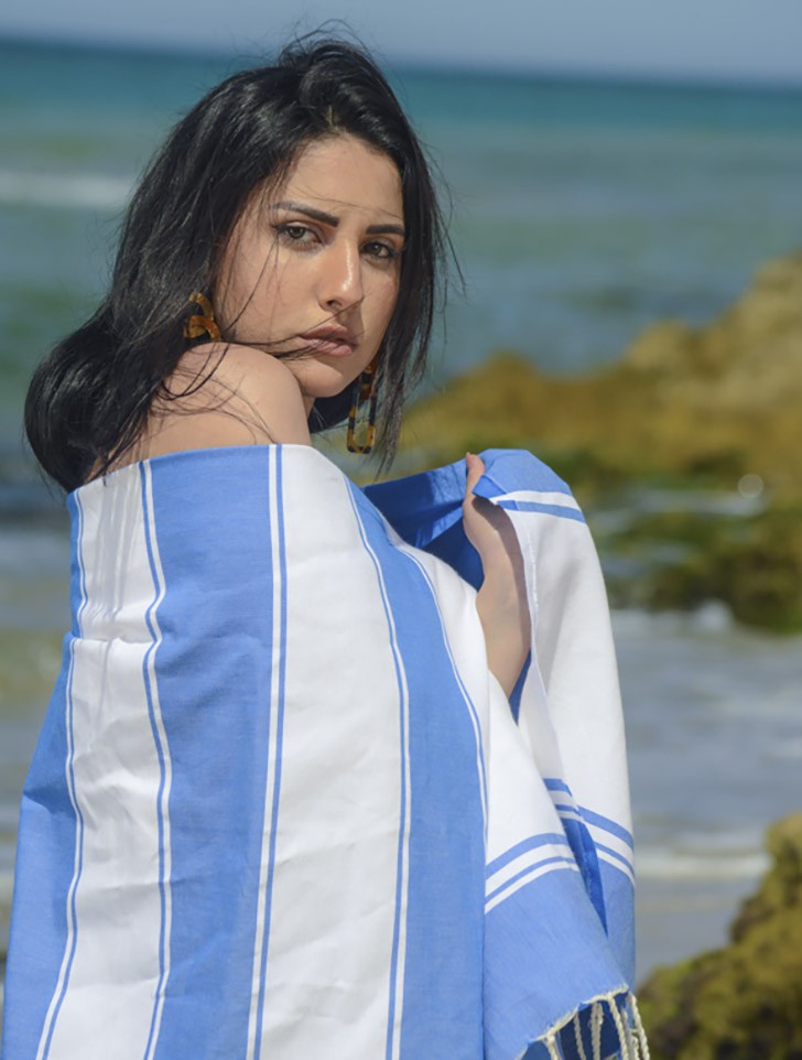 Fouta Plate milano blanche et bleu
