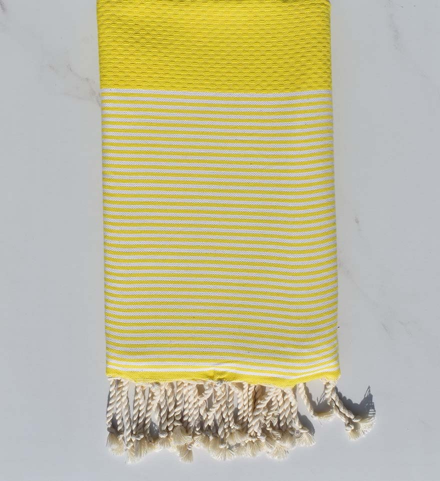 Superbe fouta nid d'abeille 100% coton couleur jaune mais