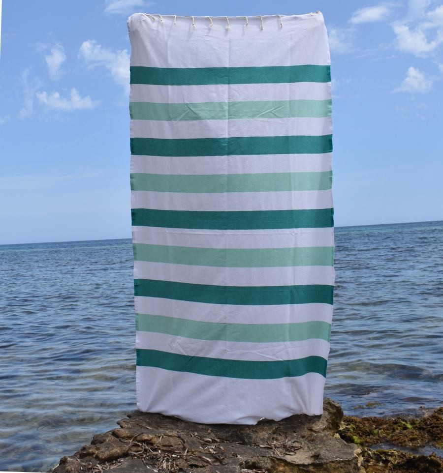 Les Foutas Montecarlo se distinguent par leurs rayures larges et contrastées, au design sobre et élégant. Leur style intemporel convient aussi bien à un usage plage qu’à la maison.