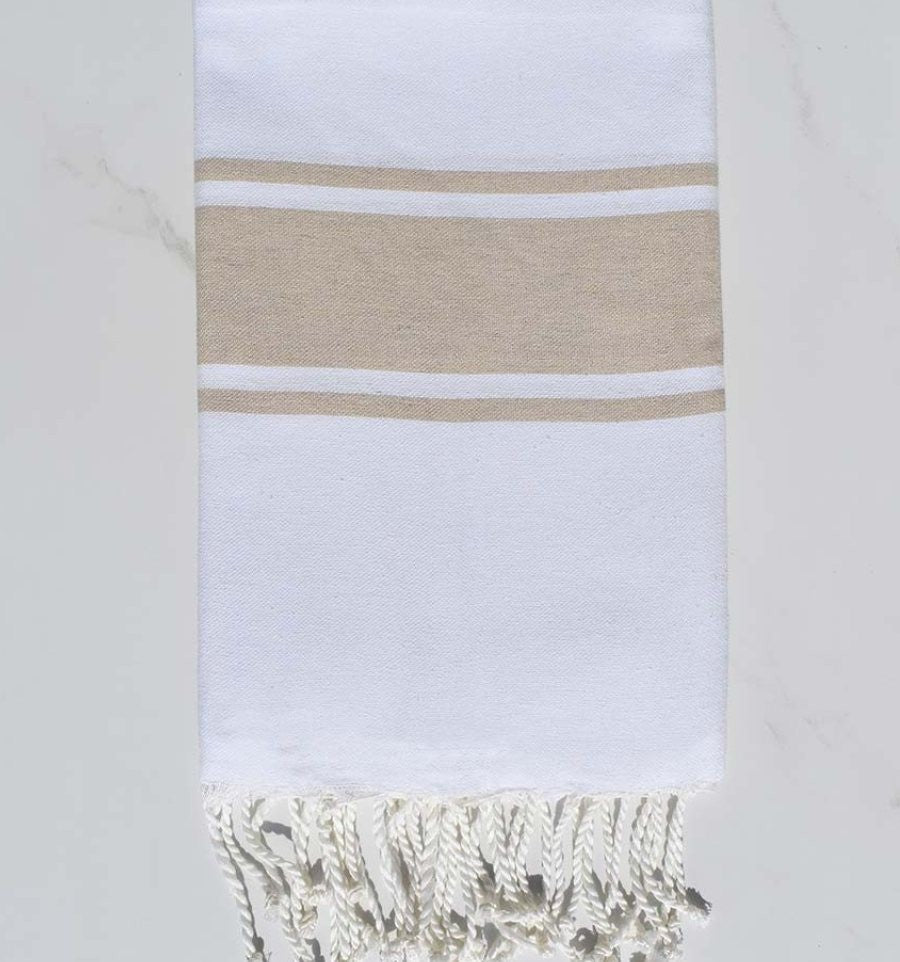 Découvrez notre fouta plate en coton recyclé blanche avec bandes beige, un incontournable pour vos moments de détente.