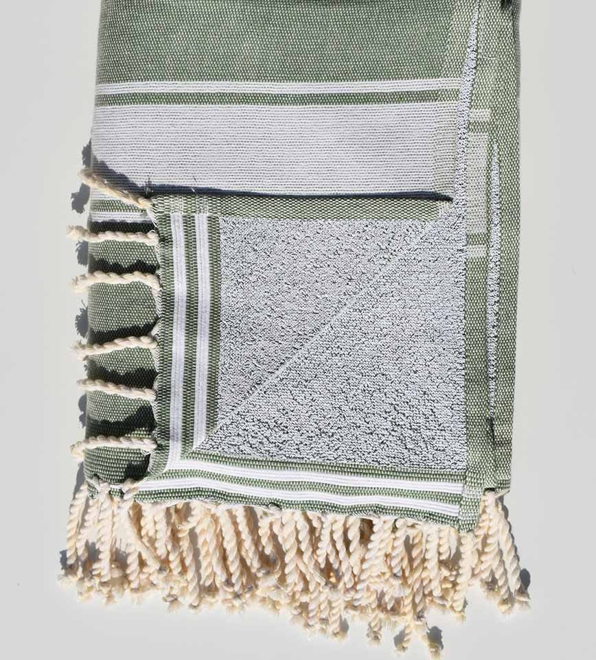 serviette de plage , tissage à plat doublée avec un tissu éponge pour plus de douceur et absorption