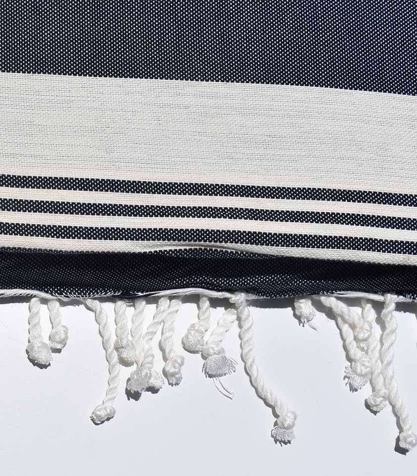 Jeté bleu foncé rayée blanc créme  - 3