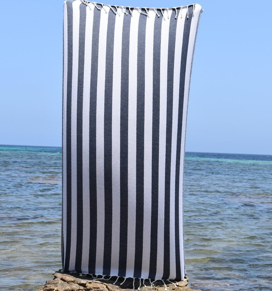 Découvrez la Fouta Alaska, un incontournable au style chic et épuré ✨. Avec ses rayures verticales élégantes, elle séduit par sa simplicité et son efficacité.