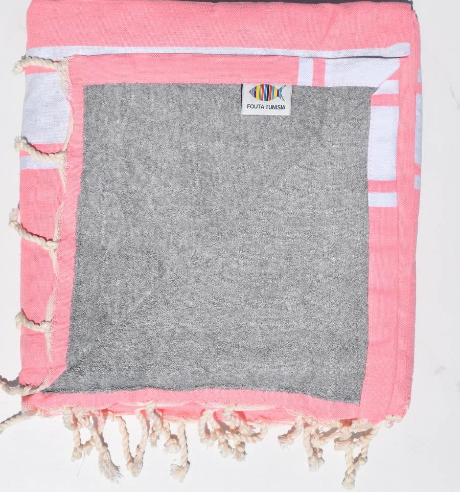 Fouta rose fluo doublée éponge grise