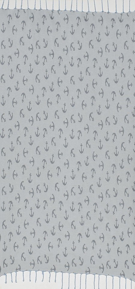 Strandtuch Jacquard Anker grau und blau geräuchert