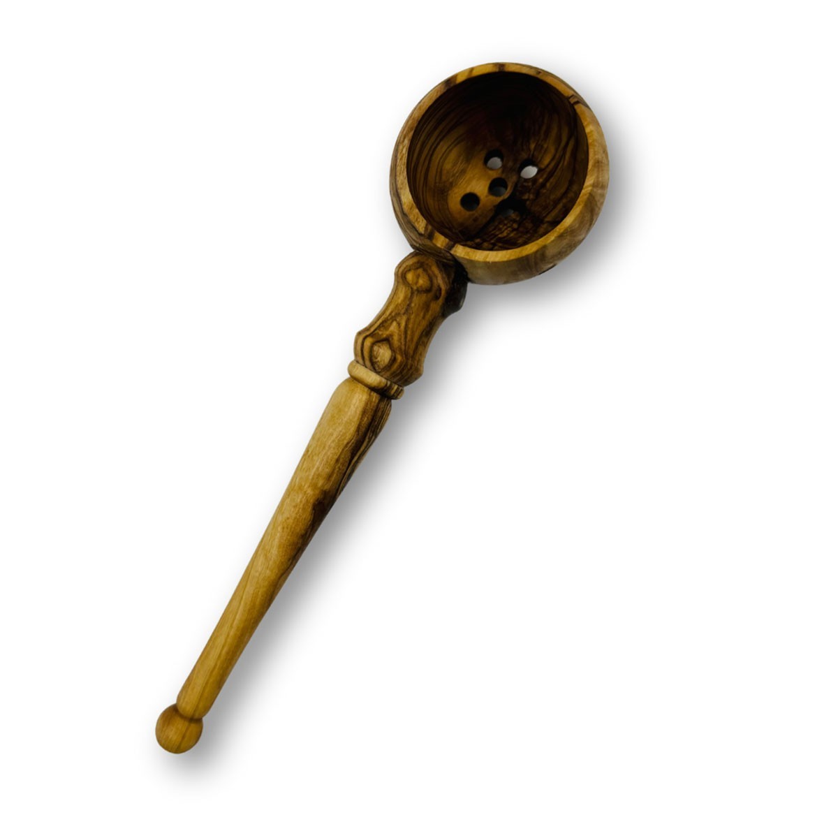 La cuillère louche à olives, fabriquée en bois d'olivier, est un ustensile ingénieux conçu pour simplifier la manipulation et le service des olives. Sa forme particulière, associée à des perforations stratégiquement disposées, permet un égouttage efficace des olives, évitant ainsi l'inconfort d'une trop grande quantité de jus. Le bois d'olivier apporte à cette cuillère une élégance rustique et une durabilité exceptionnelle, résistant parfaitement à l'humidité. Cette cuillère louche à olives permet une présentation propre et élégante des délicieuses collations, incarnant le mariage harmonieux entre l'esthétique authentique du bois d'olivier et une fonctionnalité intelligente, pour une expérience culinaire agréable et pratique.
