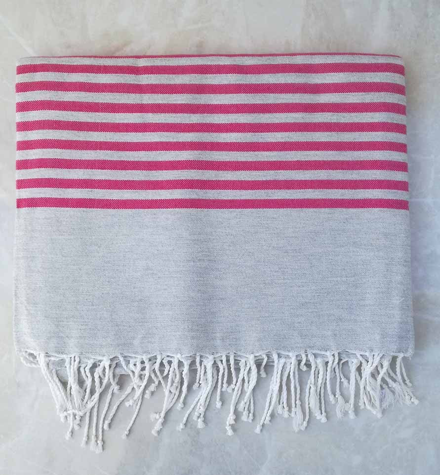 Grande fouta grigio con strisce rosa